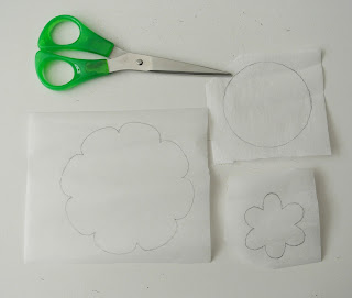 • Neem bloem applicatie A van het patroonblad en trek de vormen over op de papieren kant van het vliesofix